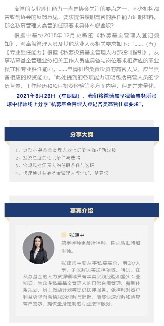 关键词:线上直播|私募基金管理人登记各类高管任职要求