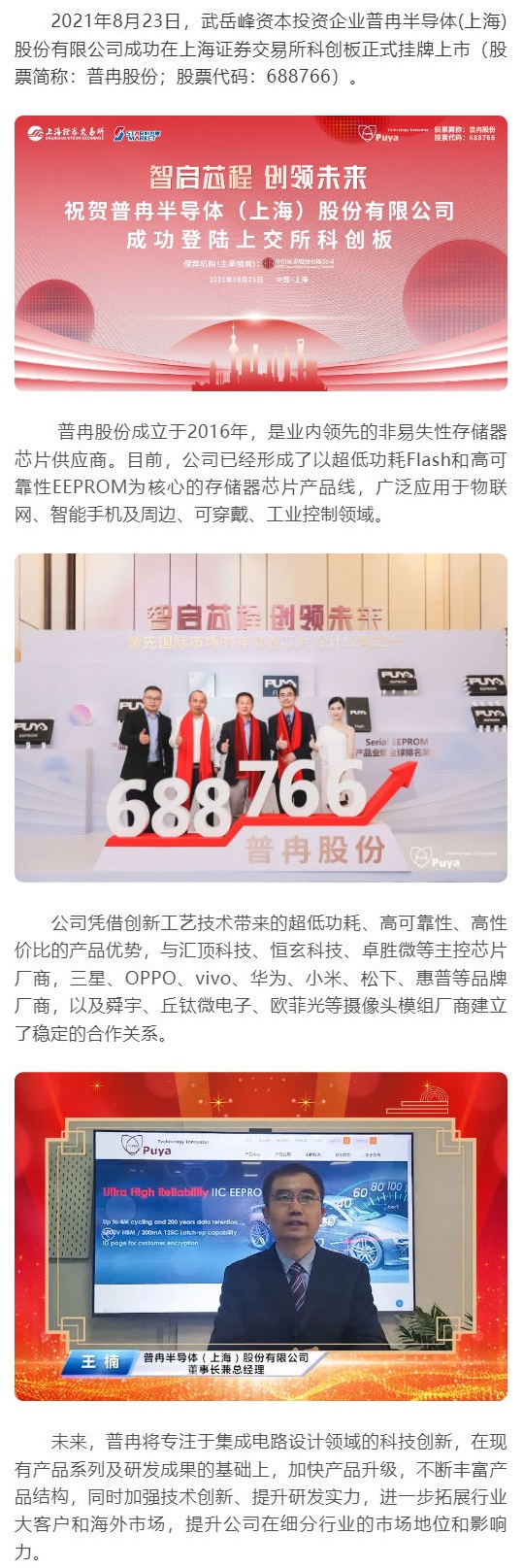 关键词:会员动态 | 武岳峰资本投资企业普冉股份科创板挂牌上市