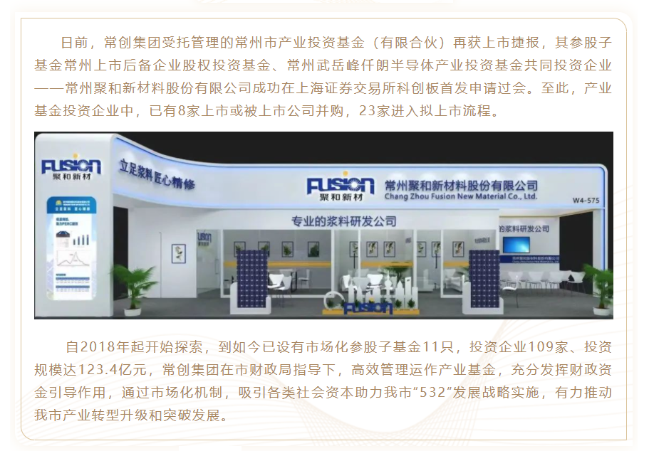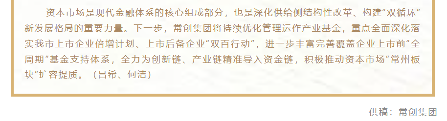 会员动态 | 常创集团产业基金管理运作显成效