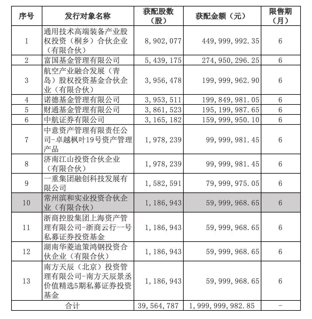 近日,中简科技股份有限公司“三期高性能碳纤维及相关产品项目”20亿定增尘埃落定。常高新金隆控股(集团)有限公司旗下基金、通用技术、中航产融等参与了此次认购。在最终公布的13家获配机构名单上,常金控位列其中,获配6000万元。