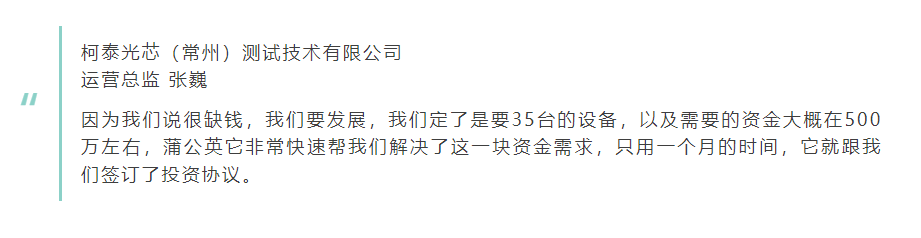 企业创新发展离不开良好的生态环境。如何通过发挥综合金融手段对创新创业的引领支撑作用,引导和助推创新产业加速发展?在武进,蒲公英科创人才基金,正如蒲公英的寓意一样,帮助众多生命力顽强的创业者和创业项目,落地、生根、发芽。 坐落于科教城内的柯泰光芯(常州)测试技术有限公司,成立于2019年,是国内专注于光电半导体测试装备研发、生产及测试系统解决方案的提供商,通过解决测试“卡脖子”环节,助力国产化芯片核心产品不断升级。2021年10月,企业成为蒲公英科创人才基金首家完成投资的企业,通过资金活水的源头注入、政策引导的护航指路,让企业发展如虎添翼。近期,柯泰光芯正式对外宣布完成千万级Pre-A轮融资,成为公司发展历程中的里程碑。